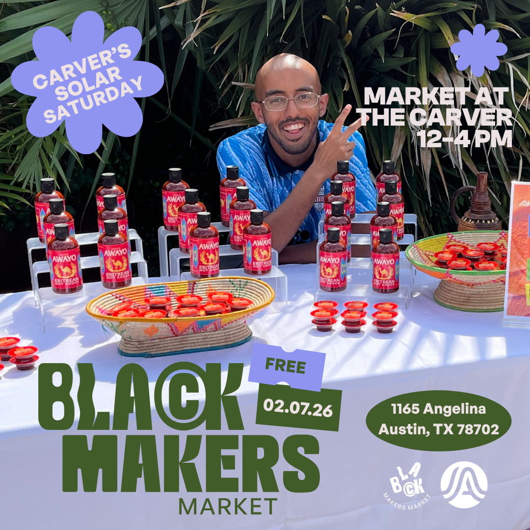 Join us as we kickoff Black History Month with Carver Museum & Cultural Center for Solar Saturday! The market takes place from 12-4 pm. Vendors should apply at blackmakersmarket.org/apply and free RSVP to attend is available below.